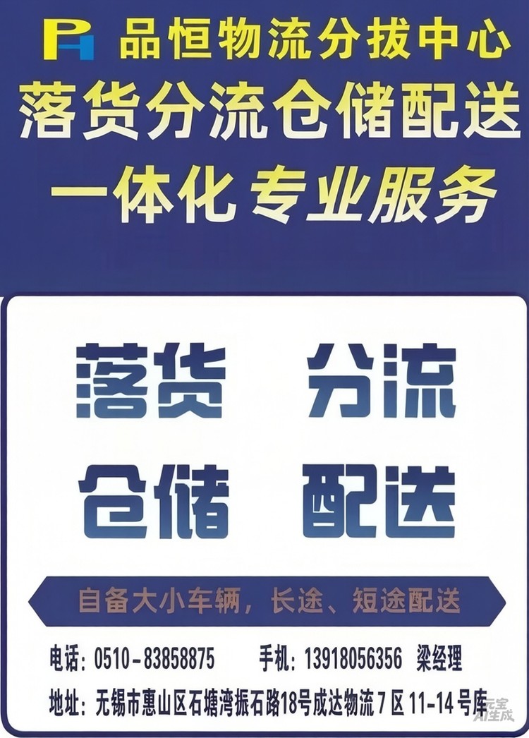 无锡品恒物流有限公司,专业落地配,承接全国各地至无锡落货,分流,配送,仓储业务,中转江苏全境,大棚里面装卸方便安全,中转时效快,欢迎新老客户来电洽谈13918056356卢经理