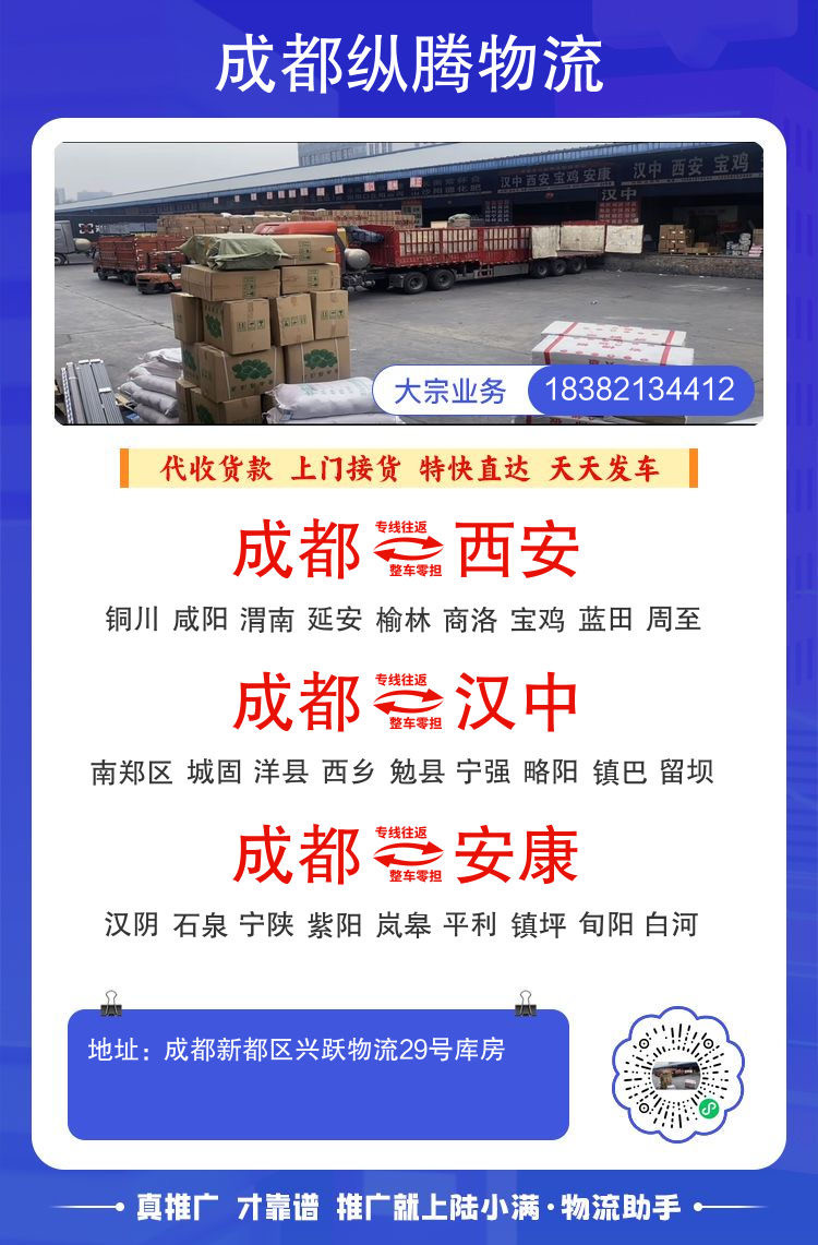四川至陕西全境❤️ 直达 西安/汉中/安康….正在装车中…. 成都网点地址及联系方式: 杨 183 4938 6619,兴跃物流29号库房 黄 177 8065 5944,中国物流1号库2门 蒲 135 5102 7379 ,古柏鑫金牛6区1号 陕西网点地址及联系方式: 陕西省汉中市汉台区汉运司驾校 胡18992605960 陕西省安康市九洲物流园2号库 张19891507167 陕西省西安市向阳物流园2号库 雷18291095586 陕西专线业务联系 杨 13228220880 黄 13981878544 第三方业务及其他问题联系18382134412